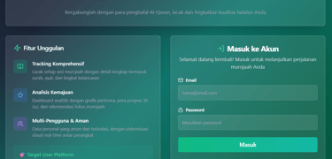 Aplikasi Murojaah Tracking adalah solusi digital yang dirancang untuk membantu pengguna memantau dan menjaga konsistensi dalam mengulang hafalan Al-Qur'an. Dengan antarmuka yang intuitif dan fitur pelacakan yang terstruktur, aplikasi ini memudahkan pengguna menetapkan target murojaah, mencatat progres harian, dan mendapatkan motivasi melalui grafik perkembangan dan pengingat otomatis.